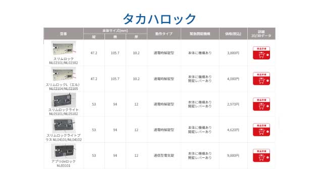 タカハ機工株式会社が扱うソレノイド電気錠には、