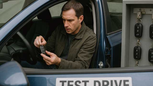 営業スタッフがスマホで試乗車キーを管理